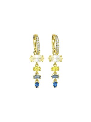 Geo Renkli Taşlı Sallantılı Gold Küpe