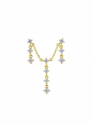 Taşlı Sallantılı Çift Delikli Vidalı Küpe | Gold