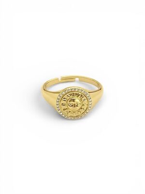 Güneş Desenli Taşlı Plaka Yüzük