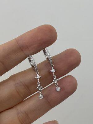 Taşlı Işıltılı Sallantılı Küpe | Silver