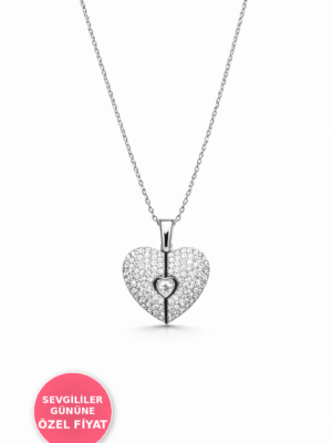 Siminkari Özel Tasarım Pembe Taşlı Kalp Kolye | Silver