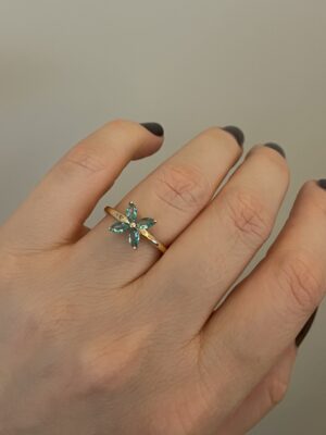 4’lü Spinelli Halka Bağlantılı Yeşil Detaylı Yüzük