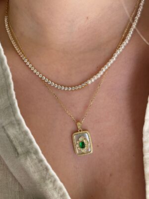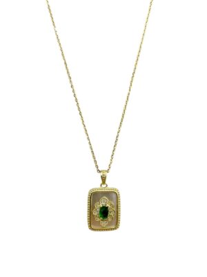 Yeşil Taşlı İçi Sedef Tasarım Gold Kolye