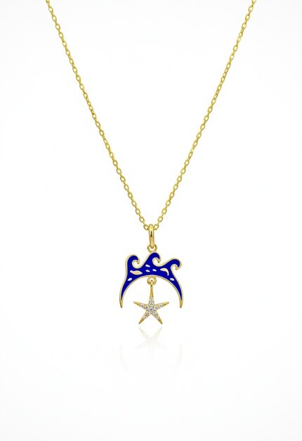 Dalga Yıldız Tasarım Kolye | Gold