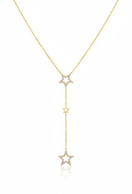 Işıltılı Yıldızlı Y Kolye | Gold