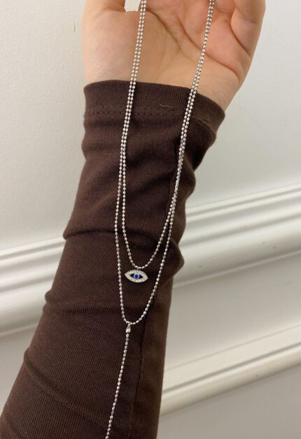 Gözlü Uzun Gold Y kolye | New Collection