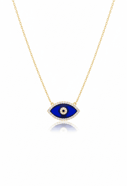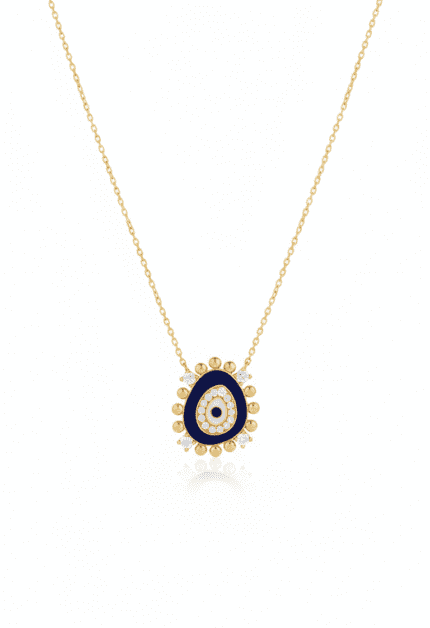 Lacivert Büyük Göz Kolye | Gold