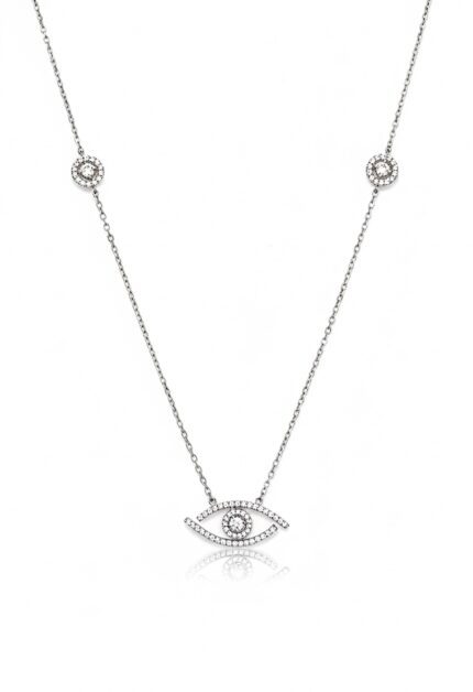 Göz ve Tek Taş Detaylı Kolye | Silver