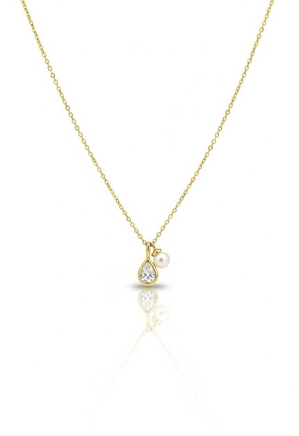 Damla Taşlı İncili Kolye | Gold