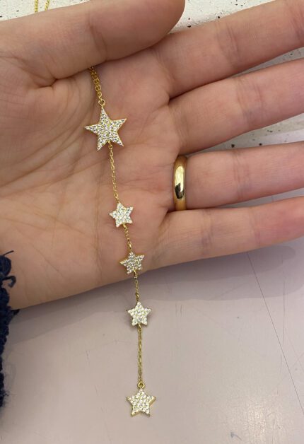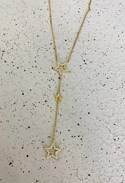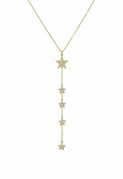 Işıltılı Yıldızlı Y Kolye | Gold