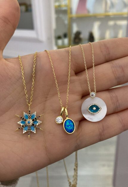 Opal Taşlı Kolye | Gold