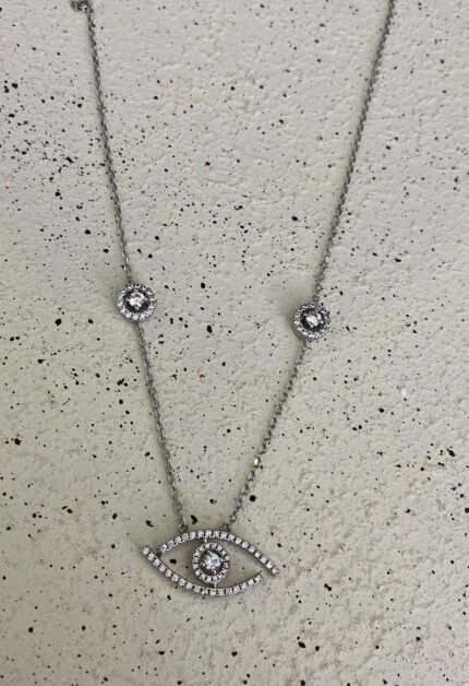 Göz ve Tek Taş Detaylı Kolye | Silver