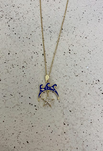 Dalga Yıldız Tasarım Kolye | Gold