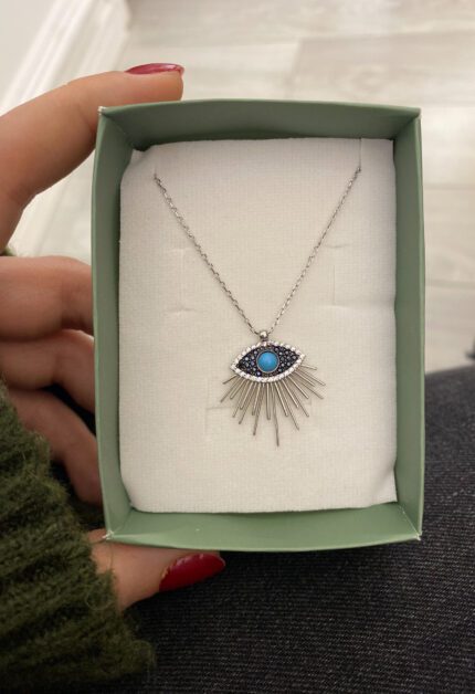 Firuze Taşlı Evil Eye Kolye | Silver