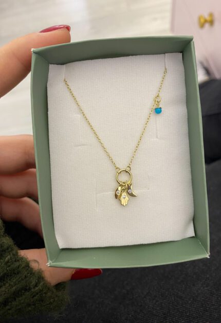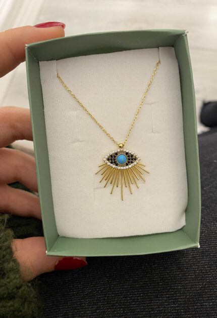 Firuze Taşlı Evil Eye Kolye | Gold