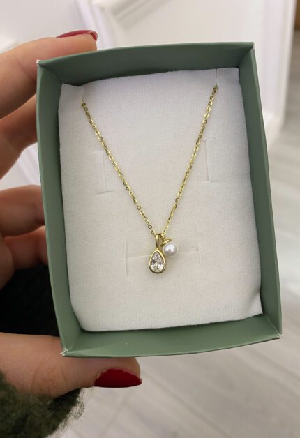 Damla Taşlı İncili Kolye | Gold