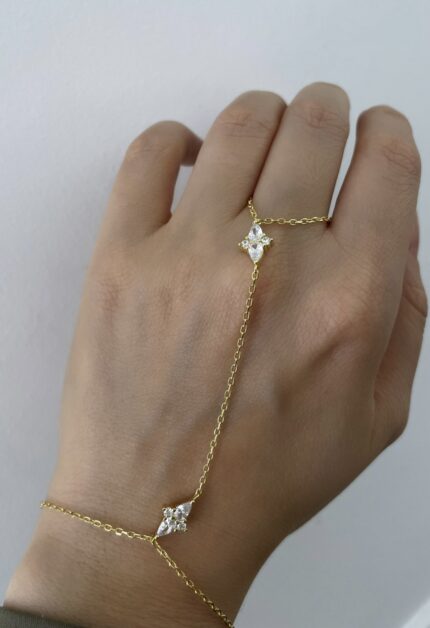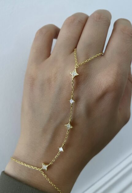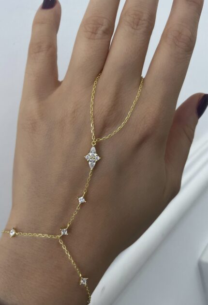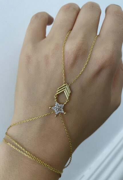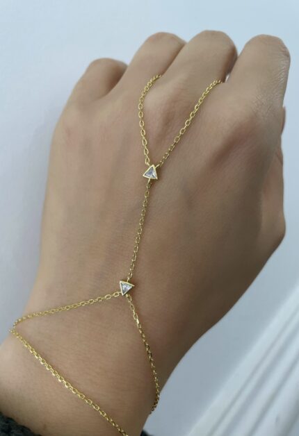 Mini Üçgen Taş Detaylı Gold Şahmeran