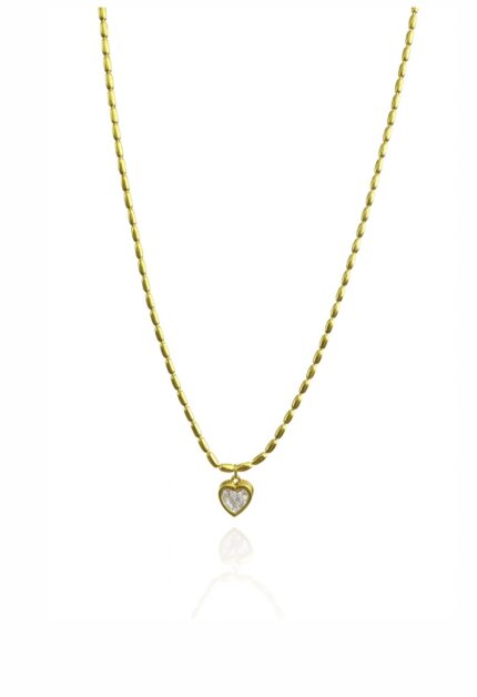 Oval Tohum Zincirli Kalp Kolye | Gold