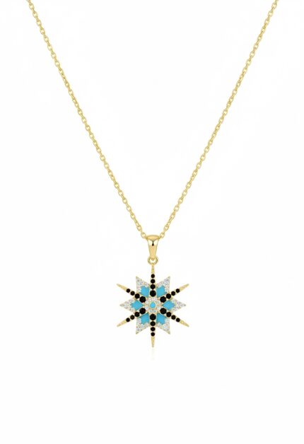 Firuze Taşlı Kuzey Yıldızı Kolye | Gold