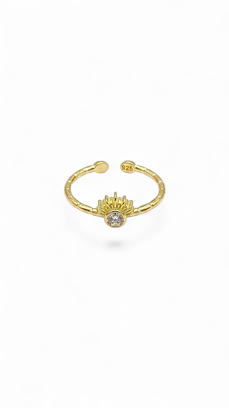 Ayarlanabilir Taşlı Yarım Güneş Model Gold Çıtır Yüzük