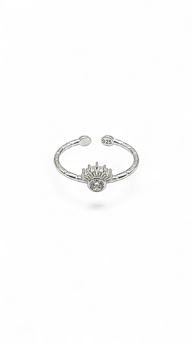 Ayarlanabilir Taşlı Yarım Güneş Model Silver Çıtır Yüzük