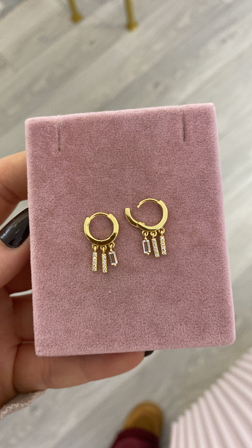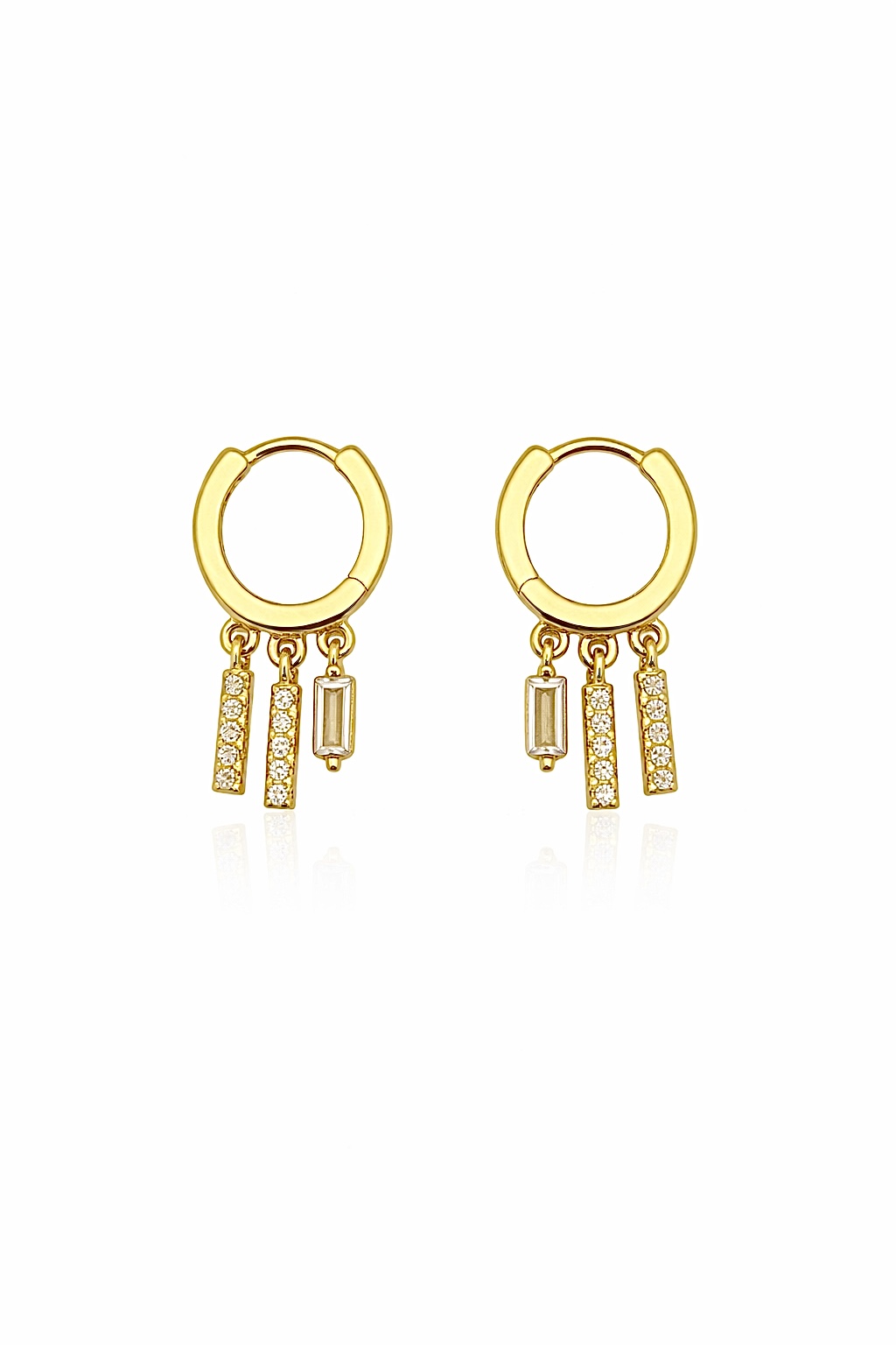 Baget Taşlı Sallantılı Halka Küpe Piercing | Gold
