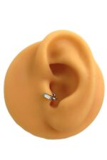Beyaz Baget Taşlı Mini Tragus Halka Piercing
