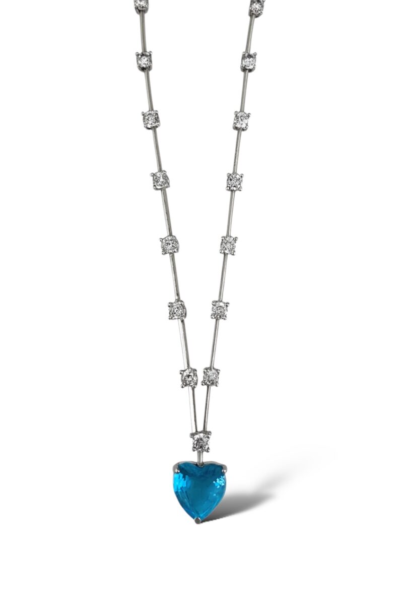 Blue Topaz Kalp Pırlanta Montür Gerdanlık 45 cm