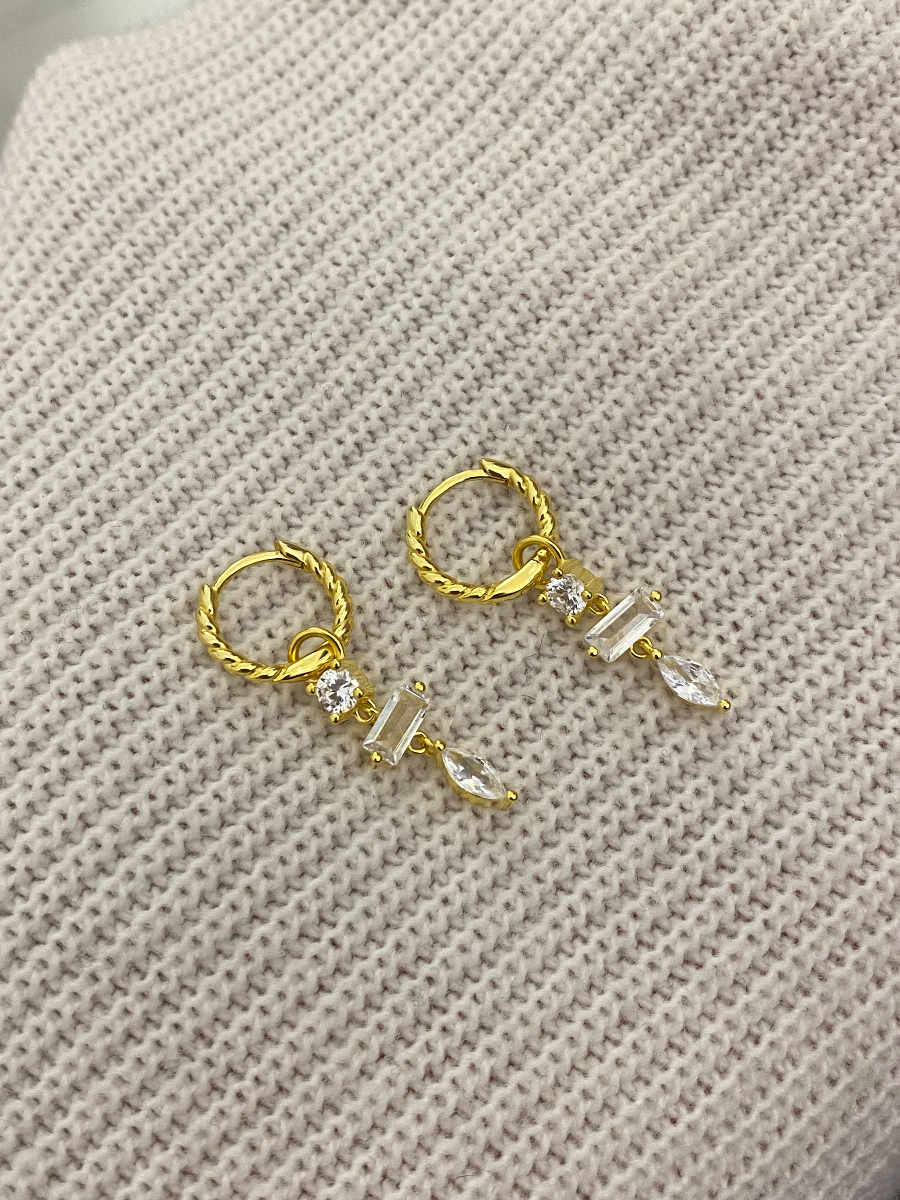 Taşlı Işıltılı Kutup Yıldızı Küpe | Gold
