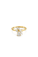 Büyük Damla Taşlı Gold Çiçek Yüzük | New Collection