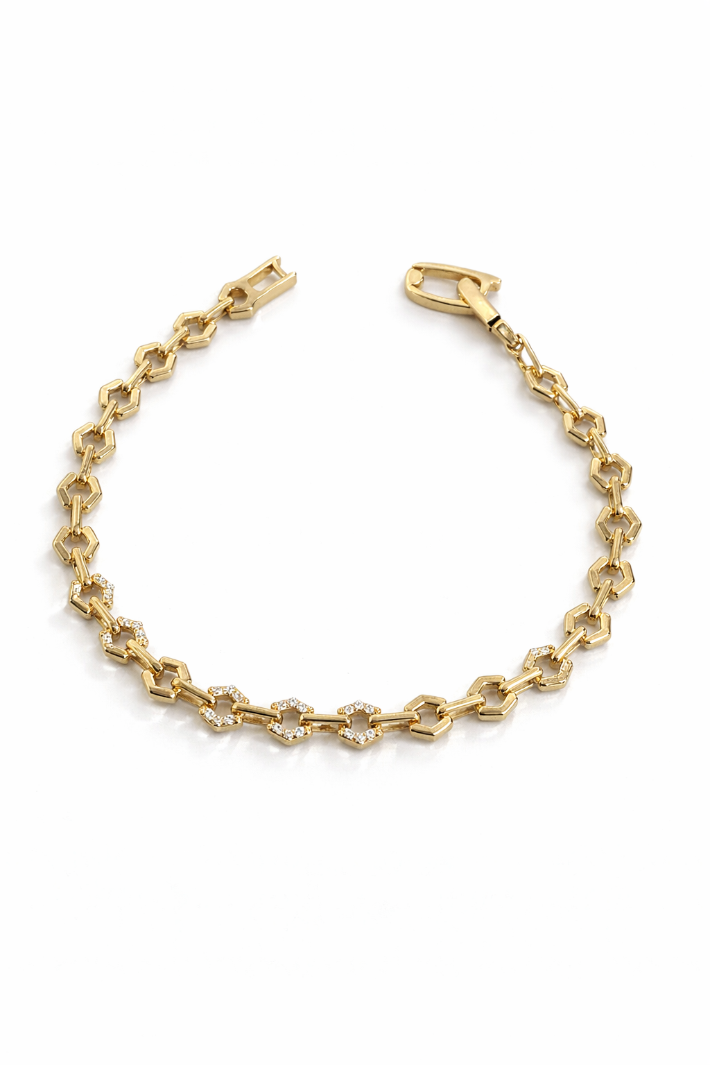 Çengel Altıgen Işıltılı Bileklik 14 Ayar Altın Kaplama