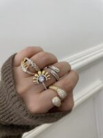 İki Renkli Taşlı Yarım Güneş Model Yüzük