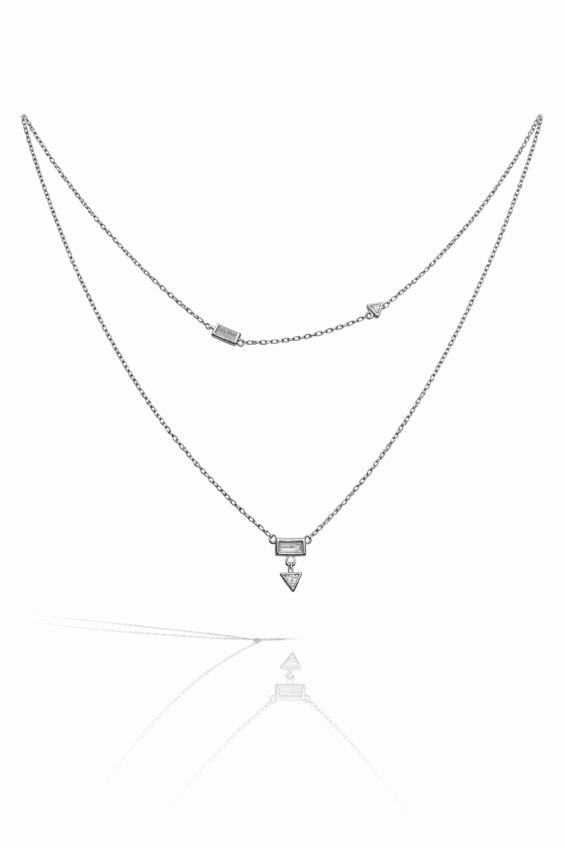 Çift Zincirli Taşlı Kolye | Silver