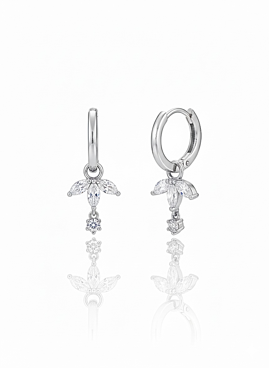 Damla Taşlı Lotus Sallantılı Halka Küpe | Silver