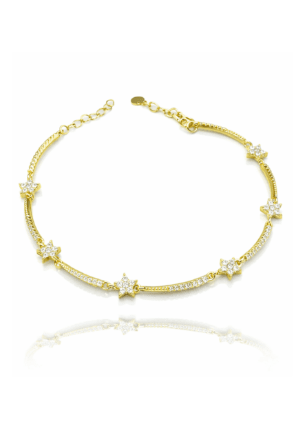 Dorika Topçuklu Elmas Kesim Taşlı Bileklik 14 Ayar Altın Kaplama