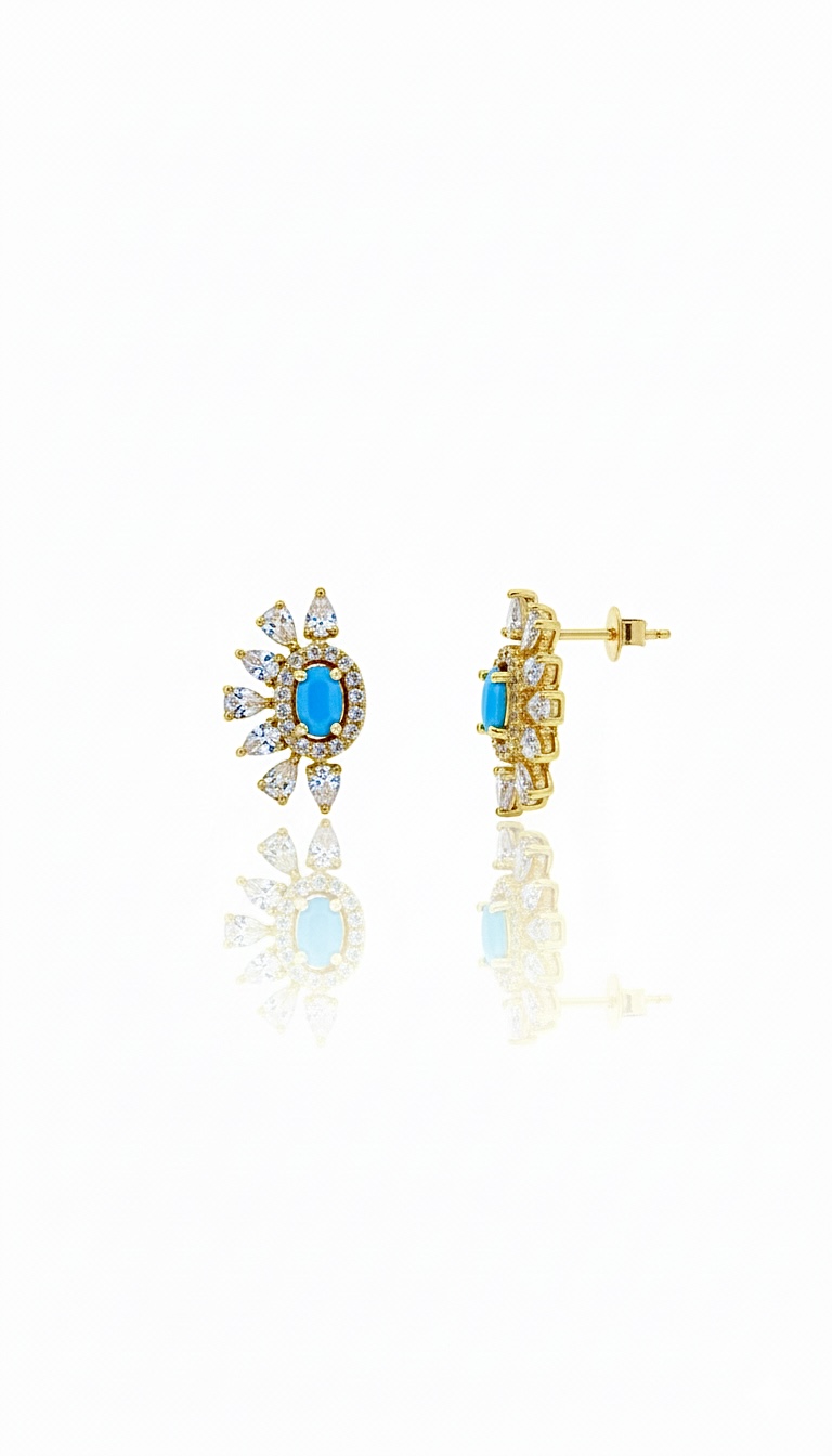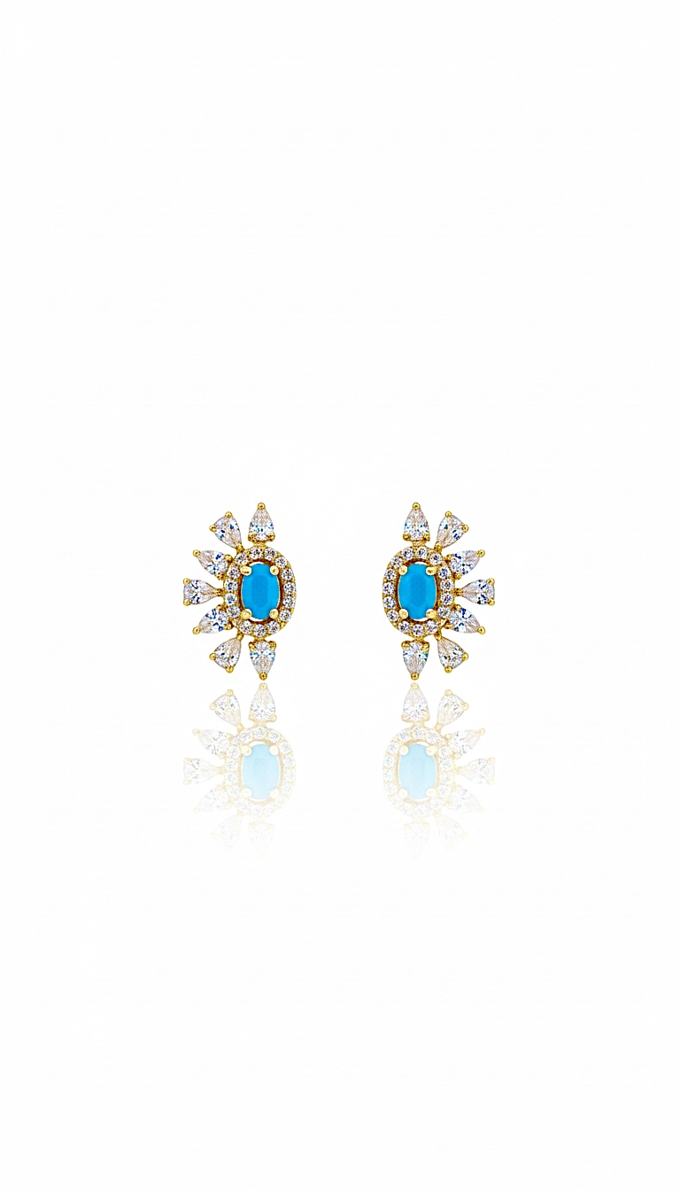 Firuze Taşlı Geo Vidalı Küpe | Gold