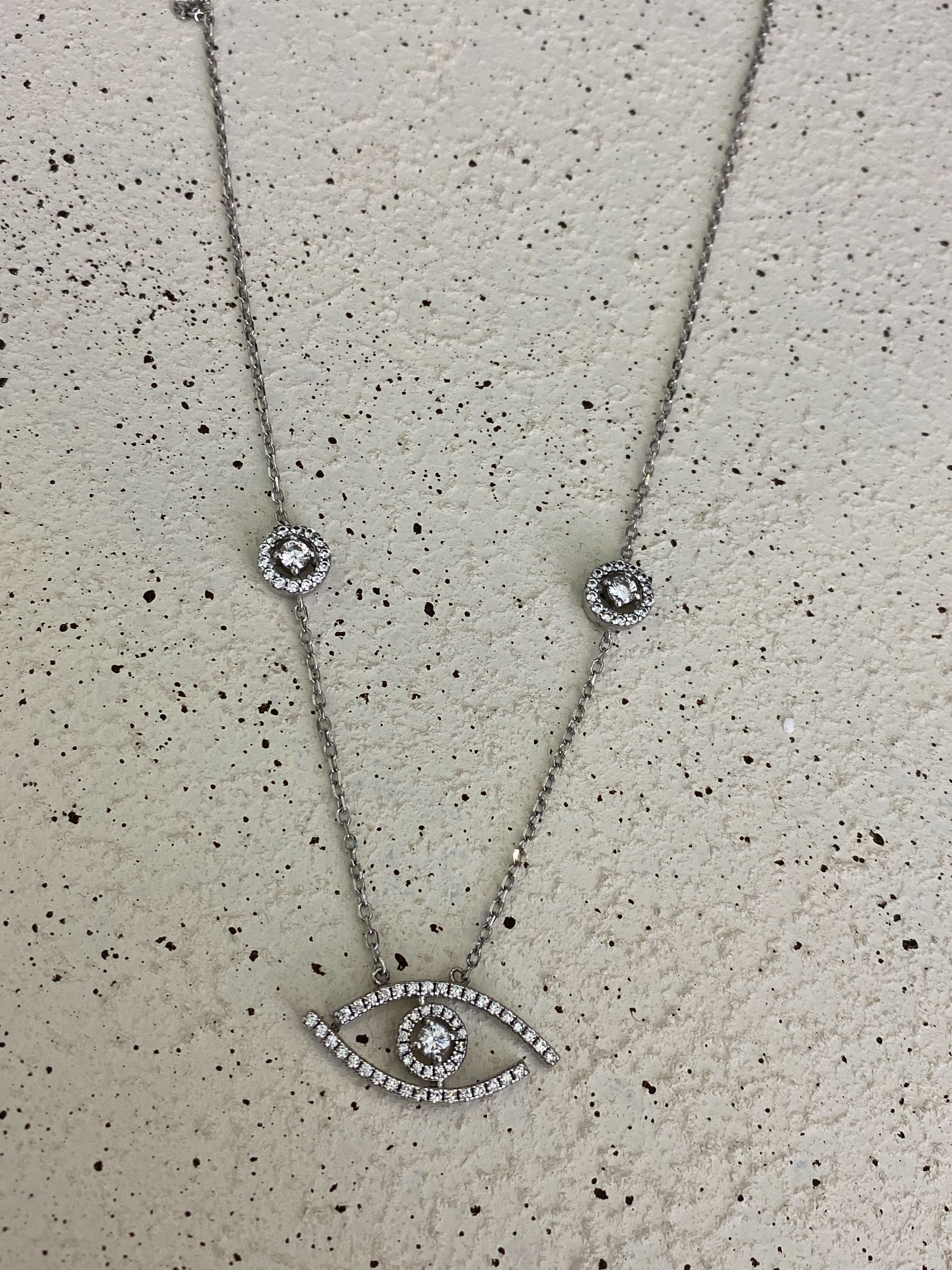 Göz ve Tek Taş Detaylı Kolye | Silver