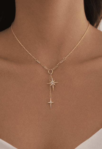 Taşlı Işıltılı Kutup Yıldızı Küpe | Gold