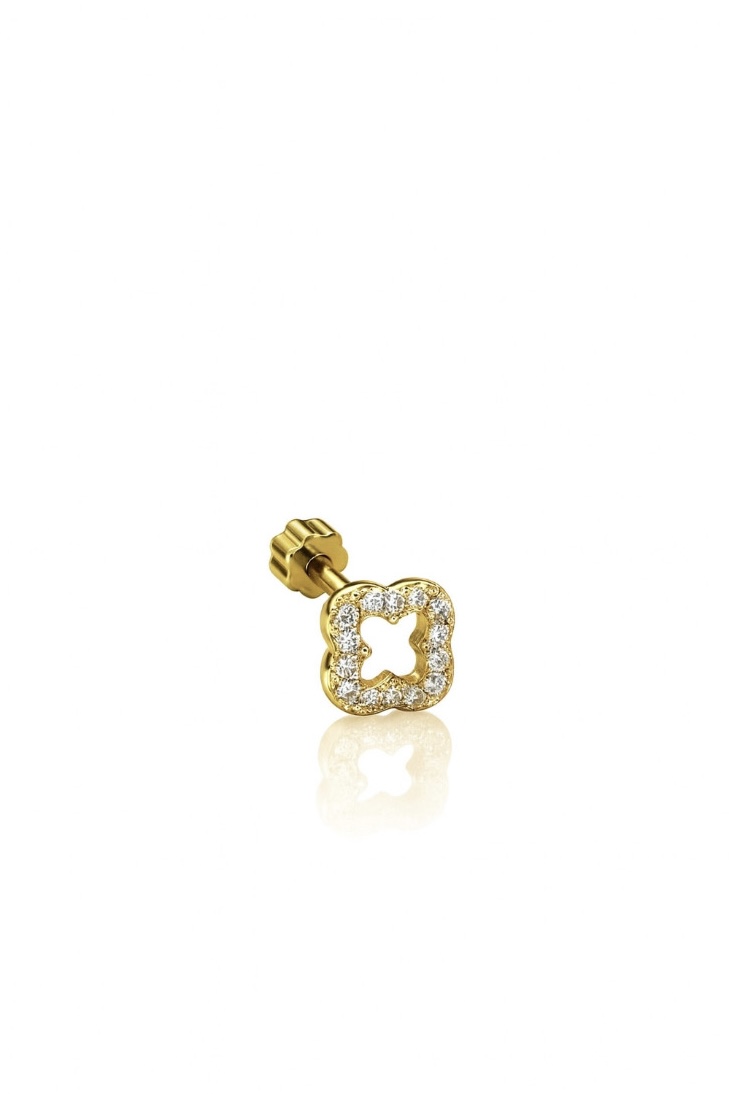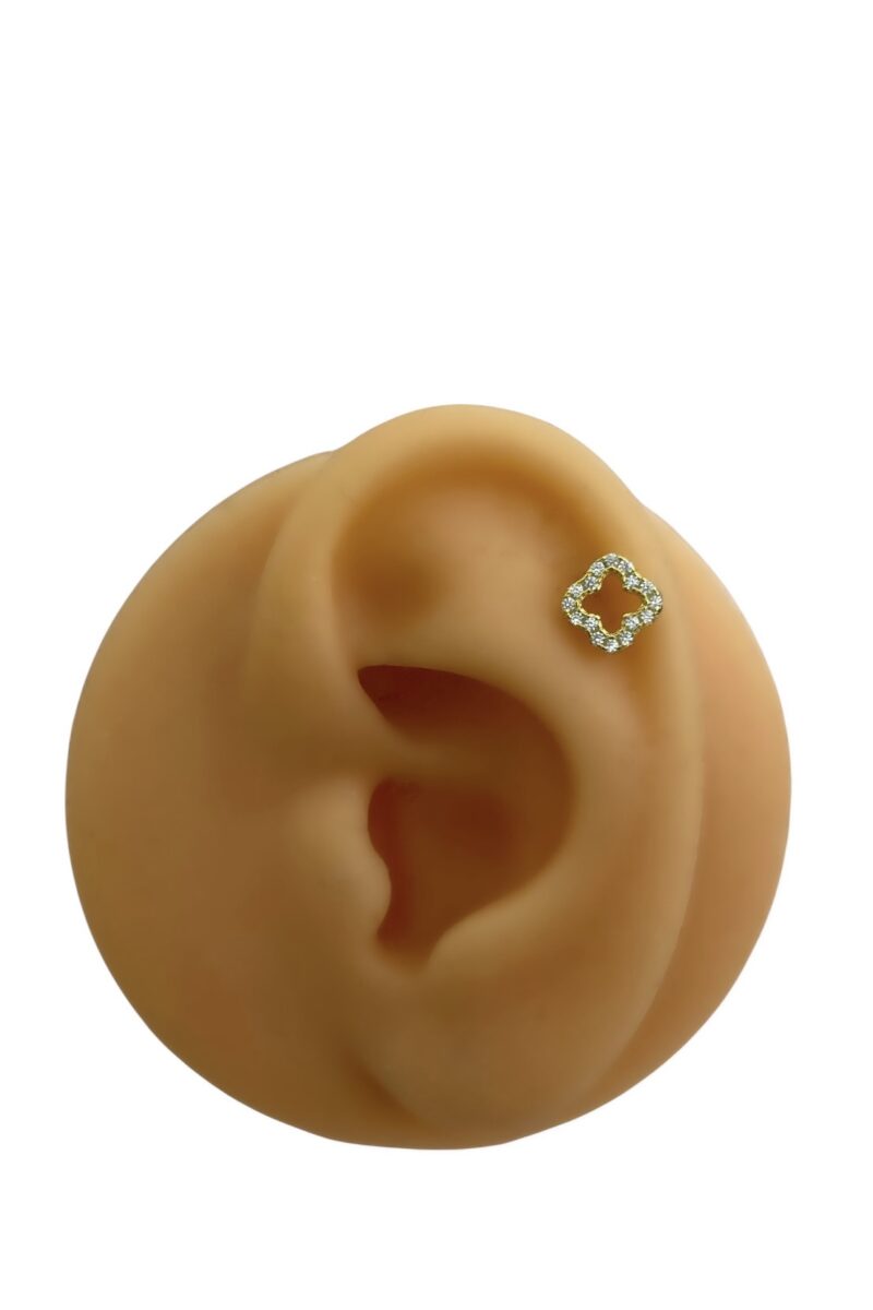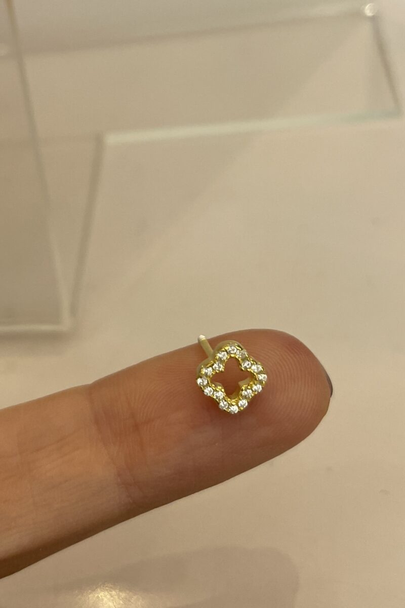 İçi Boş Işıltılı Yonca Piercing | Gold