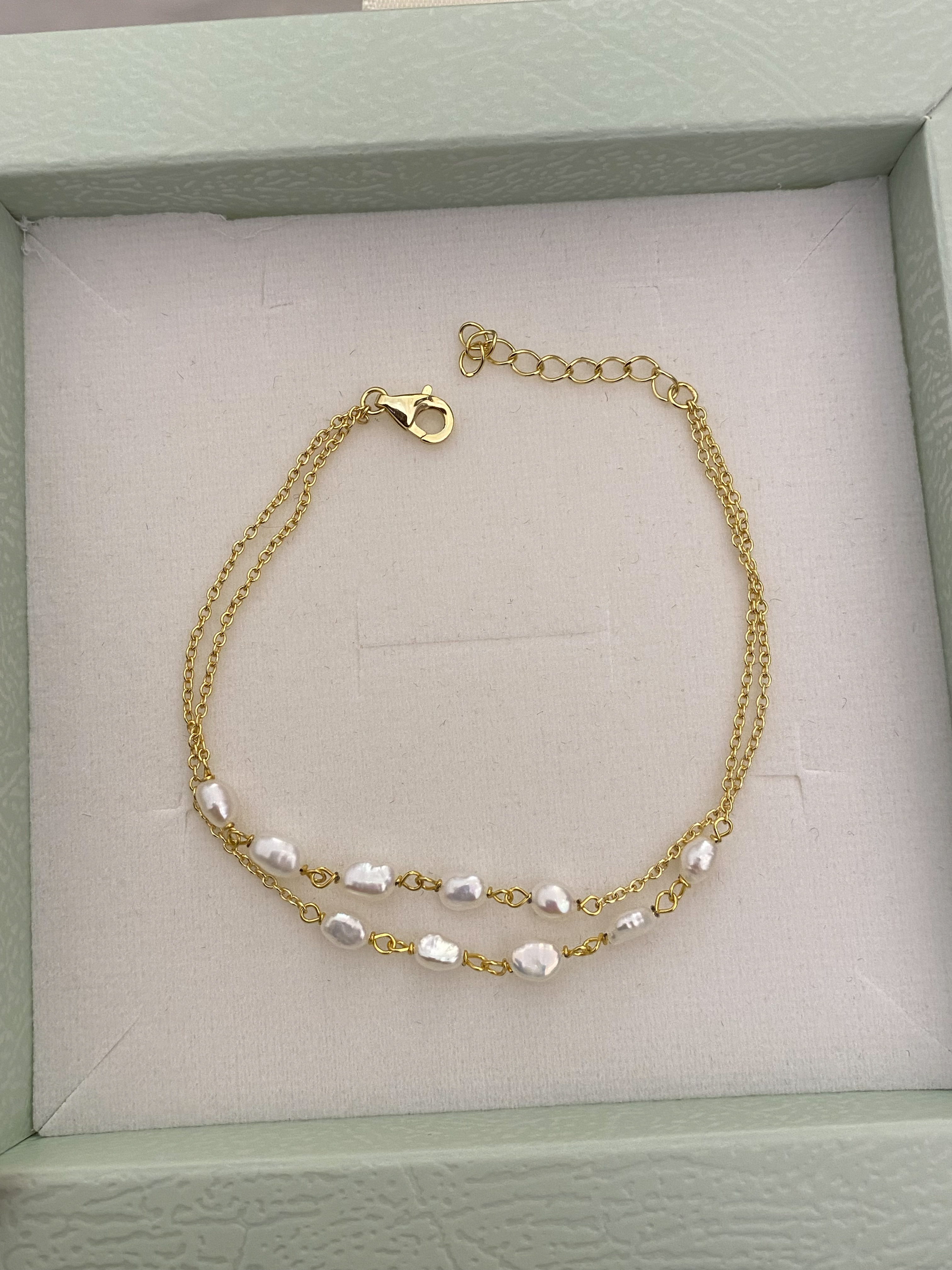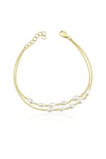 Gerçek Barok İncili Çift Zincirli Gold Bileklik