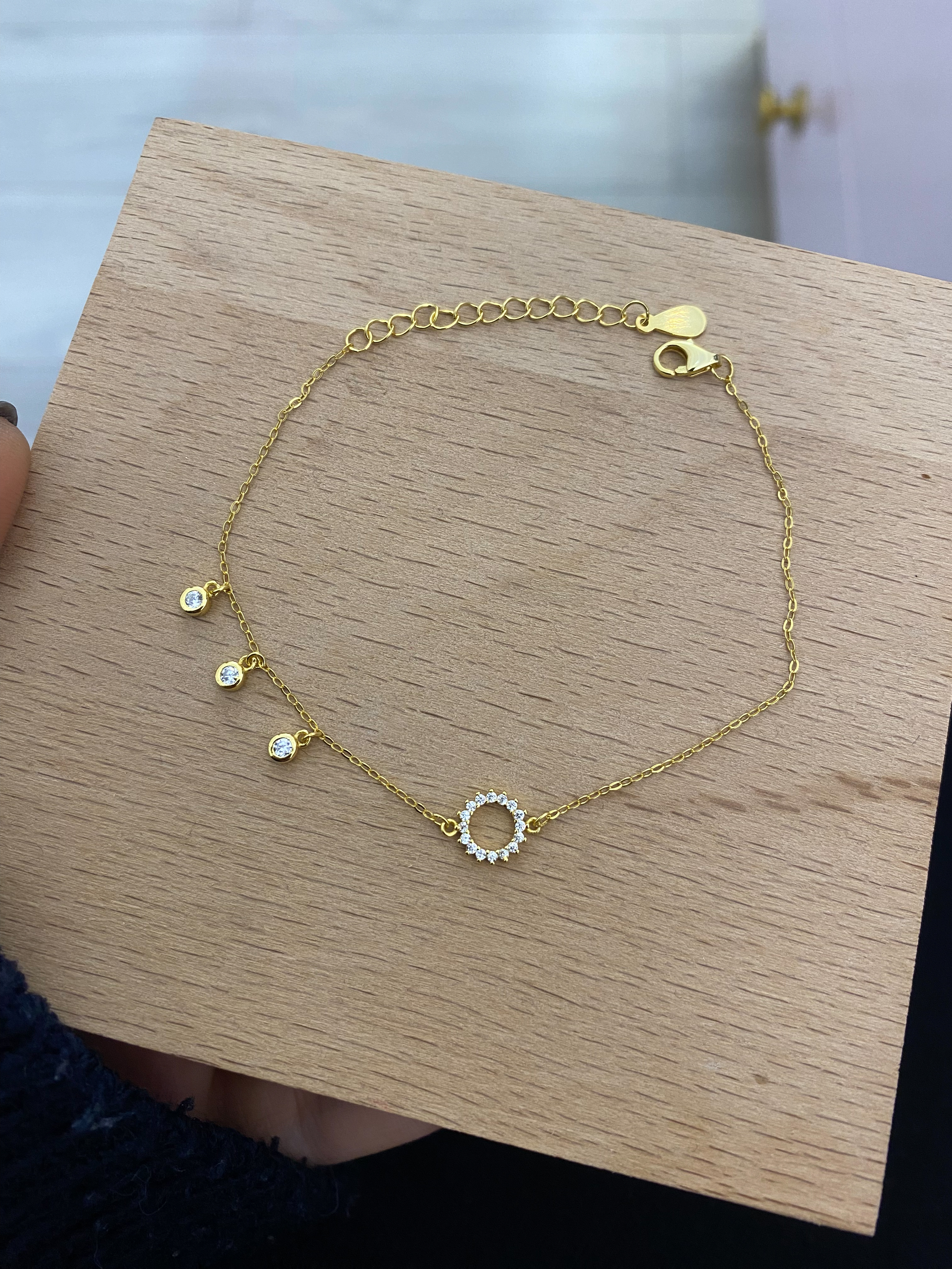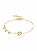 Işıltılı Daire Ve Taş Sallantılı Minimal Bileklik | Gold