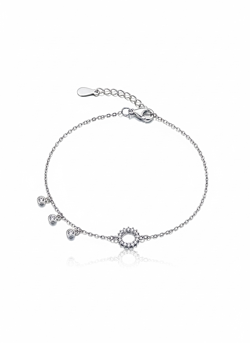 Işıltılı Daire Ve Taş Sallantılı Minimal Bileklik | Silver