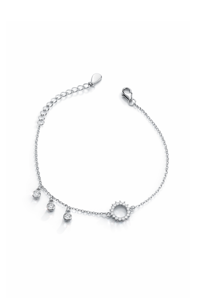 Işıltılı Daire Ve Taş Sallantılı Minimal Silver Bileklik
