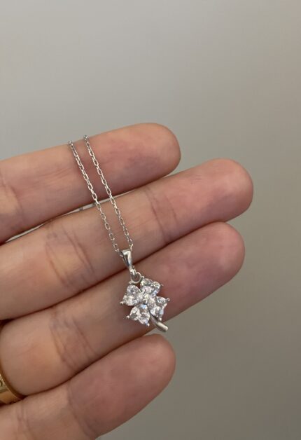 Işıltılı Yonca Kolye Silver Rodyumlu