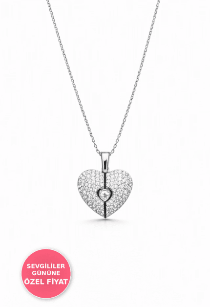 Siminkari Özel Tasarım Pembe Taşlı Kalp Kolye | Silver