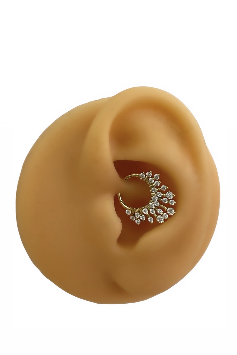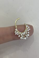 Yeşil Beyaz Taşlı Taç Gold Piercing