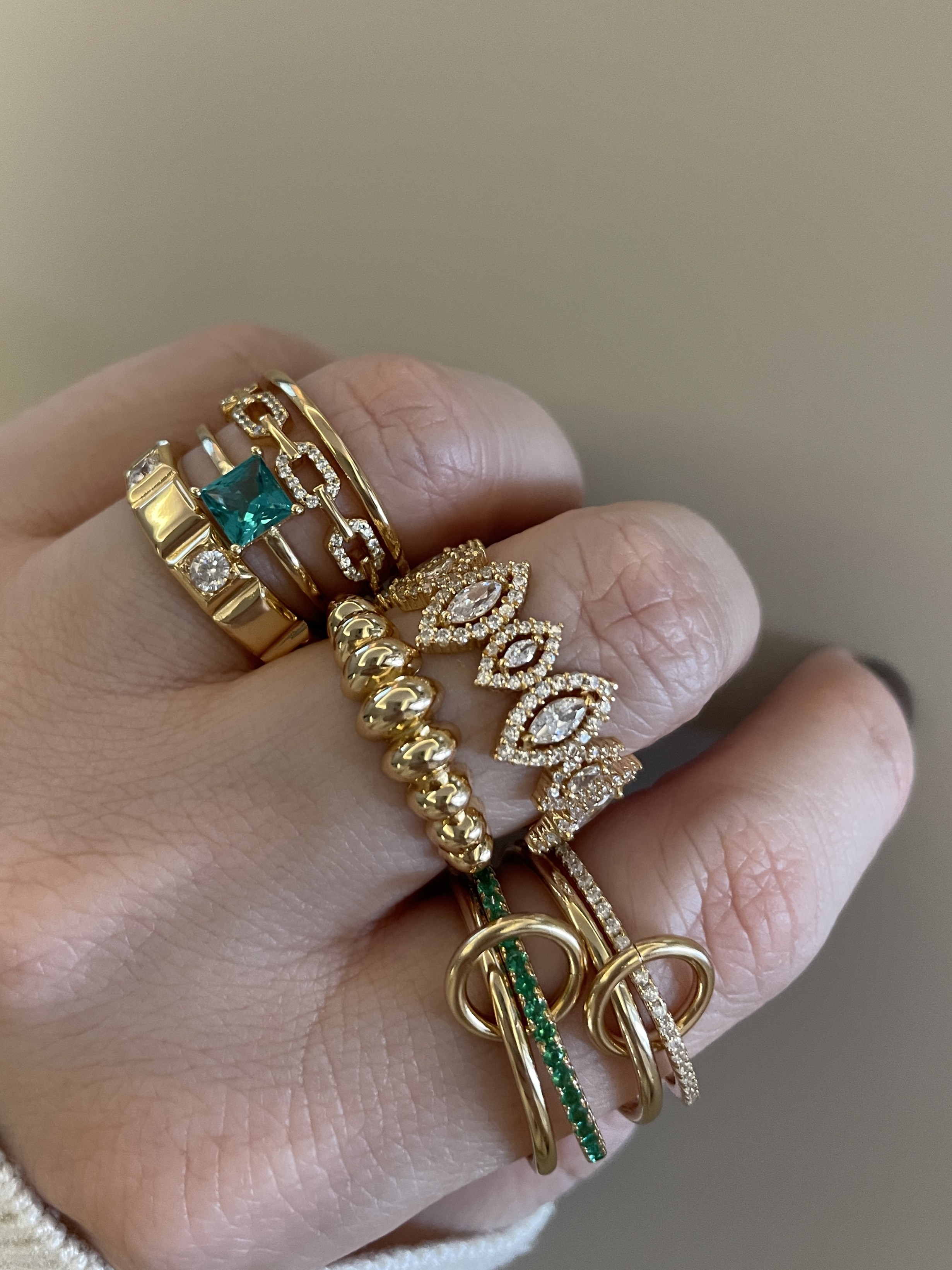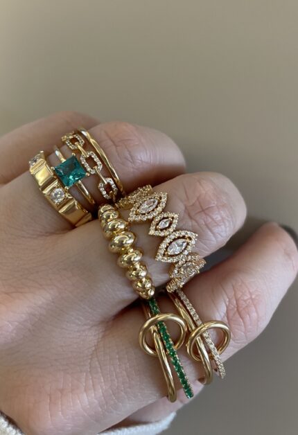 4’lü Spinelli Halka Bağlantılı Yeşil Detaylı Yüzük