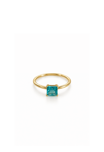 Su Yeşili Kare Tek Taş Yüzük