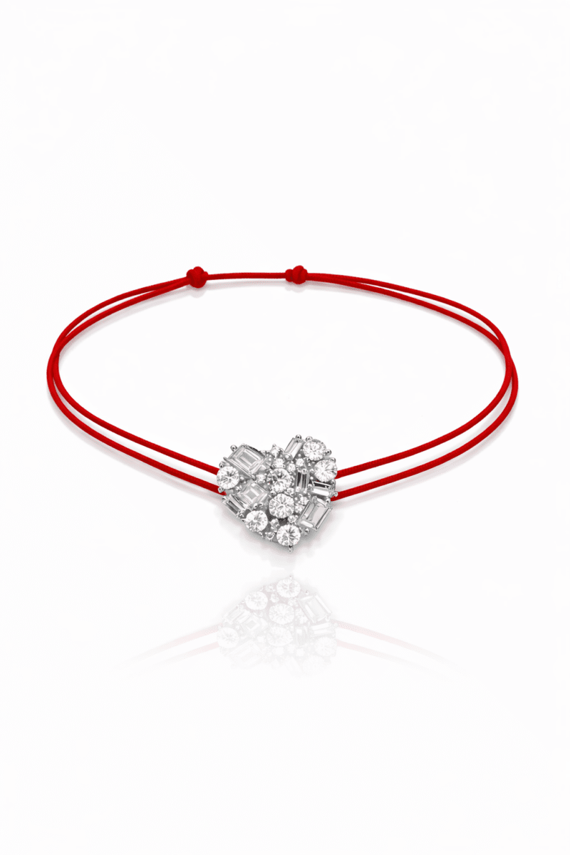 Kırmızı İpli Baget Taşlı Kalp Bileklik | Elmas Montür
