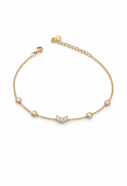 Üç Taşlı Pırlanta Montür Bileklik | Gold
